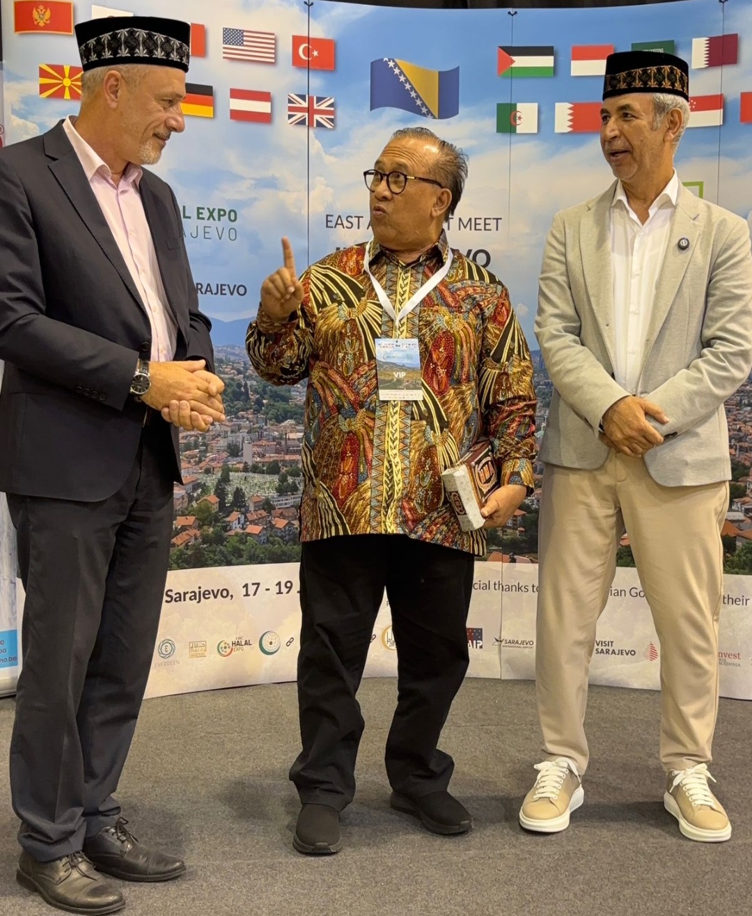 Sapta Nirwandar ( tengah) bersama para penyelenggara dari Rekaz, perusahaan organizer Sarajevo Halal Expo 2025 ( Foto: Bobby/ IHLC) SARAJEVO,...