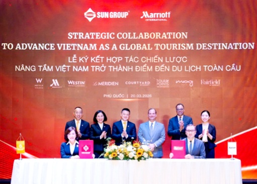 Sun Group dan Marriott International menandatangani kemitraan strategis untuk mengangkat Vietnam menjadi destinasi wisata global. ( Foto: Sun Group). HANOI,...