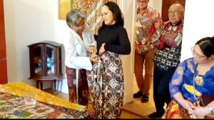 Sekitar 60 tamu, baik warga lokal Jerman maupun komunitas Indonesia, menikmati pameran batik yang penuh cerita dan makna.